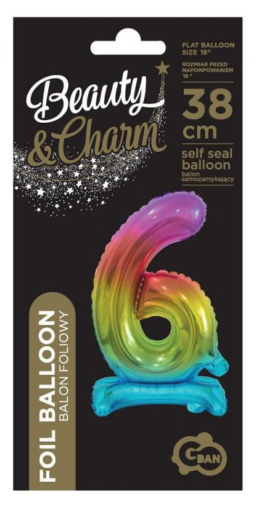Színes Rainbow mini 6-os szám fólia lufi talppal 38 cm