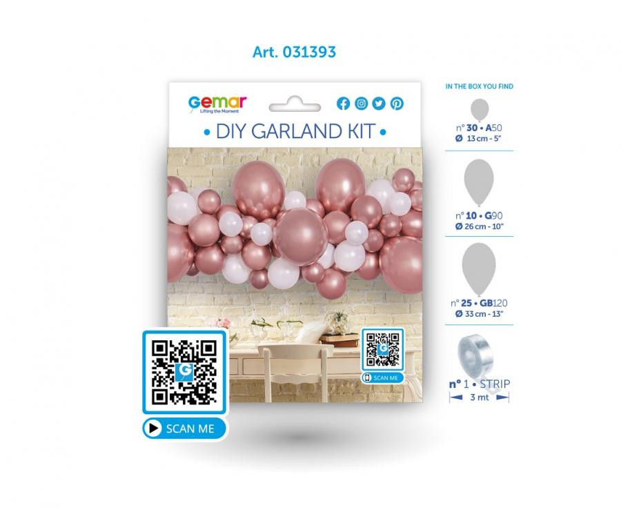 Színes Rose Gold léggömb, lufi girland szett 65 db-os