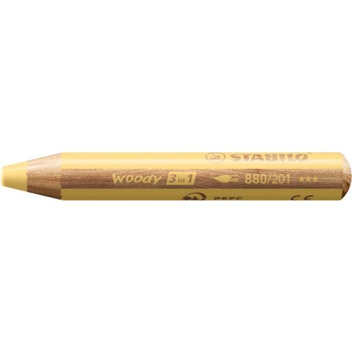 Színes ceruza, kerek, vastag, STABILO "Woody 3 in 1 Pastel", pasztell sárga