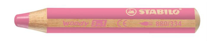 Színes ceruza, kerek, vastag, STABILO "Woody 3 in 1", rózsaszín