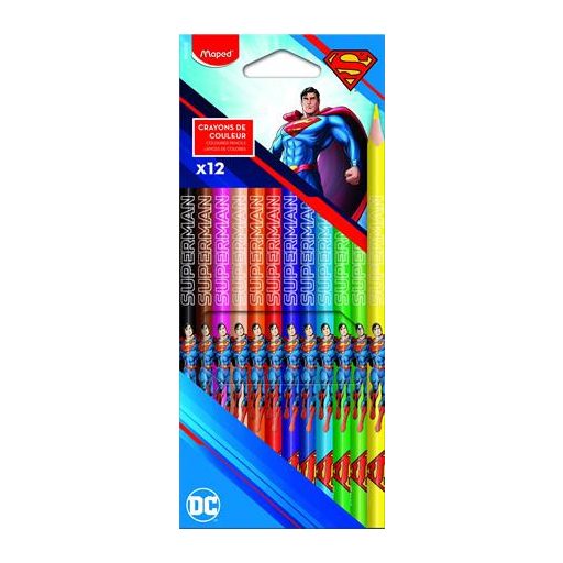 Színes ceruza készlet, háromszögletű, MAPED "Superman", 12 különböző szín