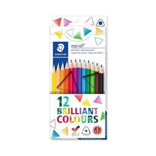 Színes ceruza készlet, háromszögletű, STAEDTLER "Ergo Soft 157", 12 különböző szín