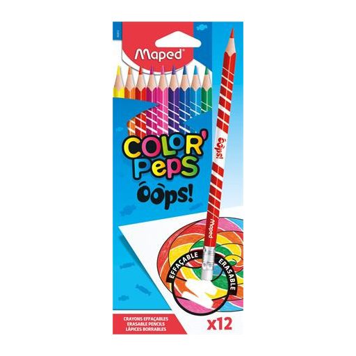 Színes ceruza készlet, háromszögletű, radírozható, MAPED "Color`Peps Oops", 12 különböző szín