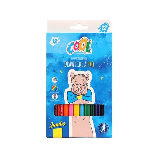 Színes ceruza készlet, háromszögletű, vastag, COOL BY VICTORIA, 12 különböző szín