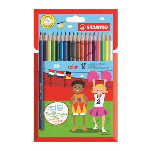 Színes ceruza készlet, hatszögletű, STABILO "Color", 18 különböző szín