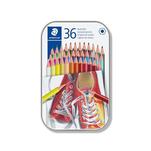 Színes ceruza készlet, hatszögletű, fém dobozban, STAEDTLER "175", 36 különböző szín