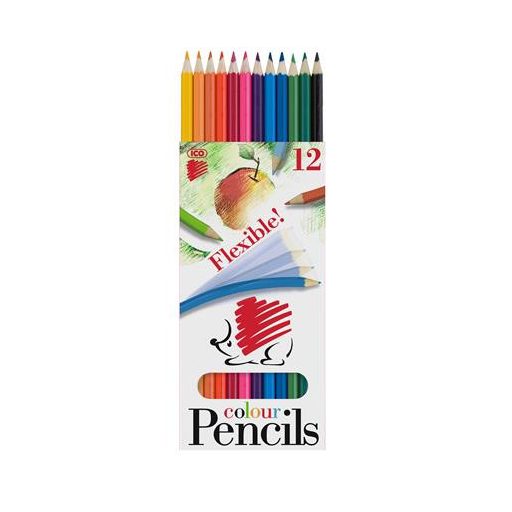 Színes ceruza készlet, hatszögletű, hajlékony, ICO "Süni", 12 különböző szín