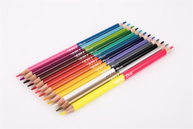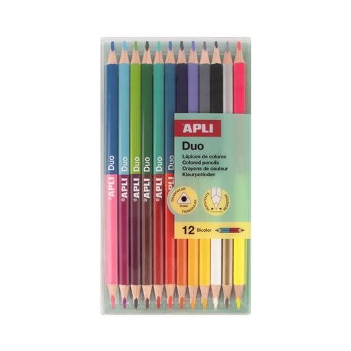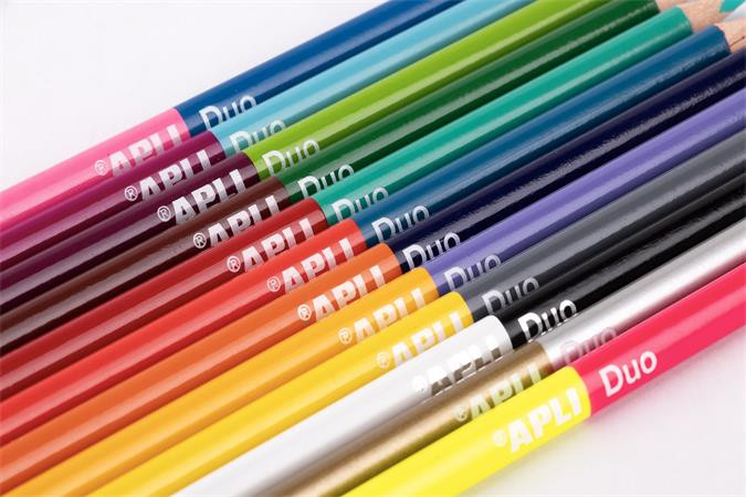 Színes ceruza készlet, kétvégű, háromszögletű, APLI "Duo", 24 különböző szín