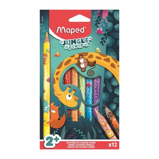 Színes ceruza készlet, vastag, MAPED "Jungle Fever", 12 különböző szín