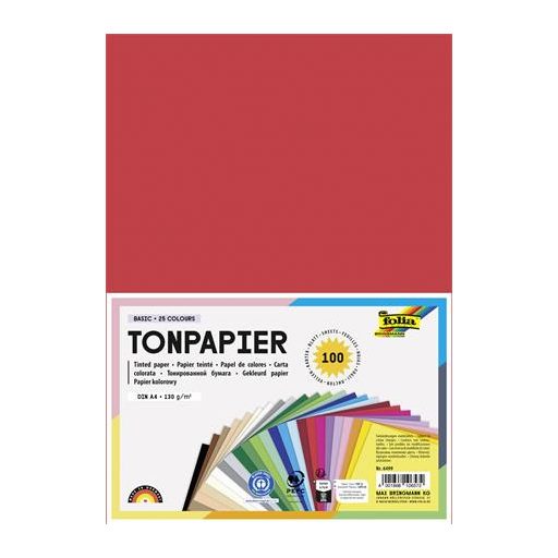 Színes papír, A4, 130 g, 25x4 lap, FOLIA, vegyes színek