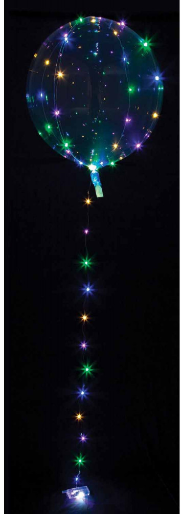 A ballon átlátszó, egy különböző színű LED diódákkal rendelkező dróttal körülvéve.