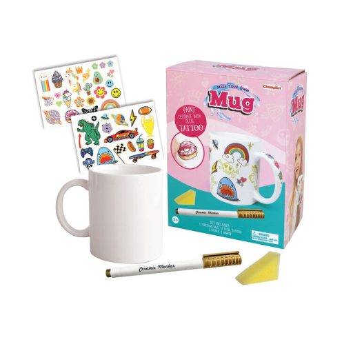 Díszíthető, festhető kerámia bögre. Hasznos kellék a mindennapokban. A mellékelt filccel és matricákkal egyedivé varázsolható, mely fejleszti a kreativitást és kézügyességet is.