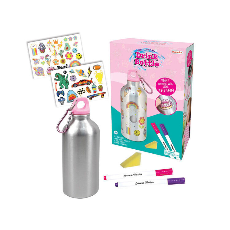 Díszíthető, festhető fém kulacs (500 ml), csavaros kupakkal, karabinerrel ellátva, mellyel könnyen a táskára akasztható. Hasznos kellék a mindennapokban. A mellékelt filcekkel és matricákkal egyedivé varázsolható, mely fejleszti a kreativitást és kézügyességet is.