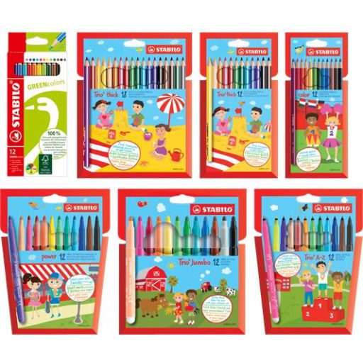 -TST20312 Színes ceruza készlet, háromszögletű, vastag, STABILO "Trio thick", 12 különböző szín