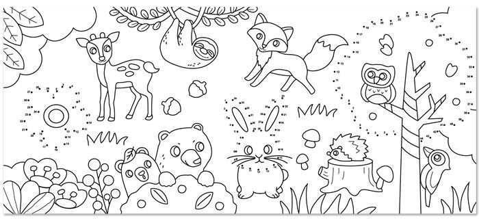 Színező tekercs, öntapadó, 31x355 cm, STICK N, erdei állatok