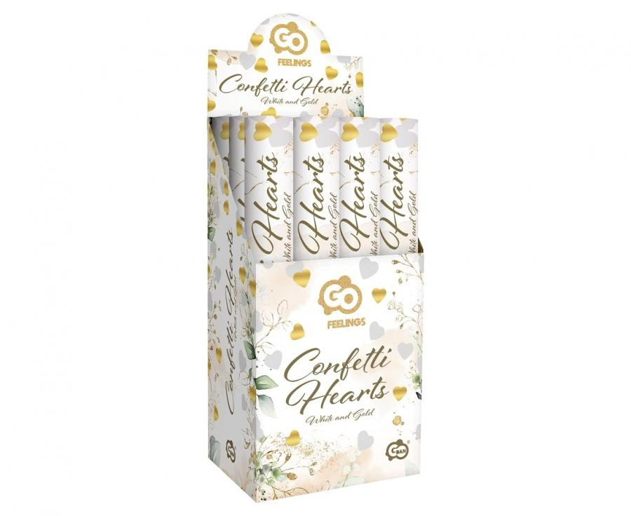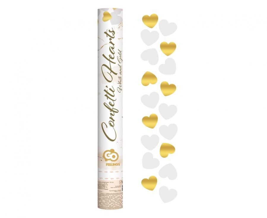 Szív Gold White Hearts konfetti kilövő 40 cm