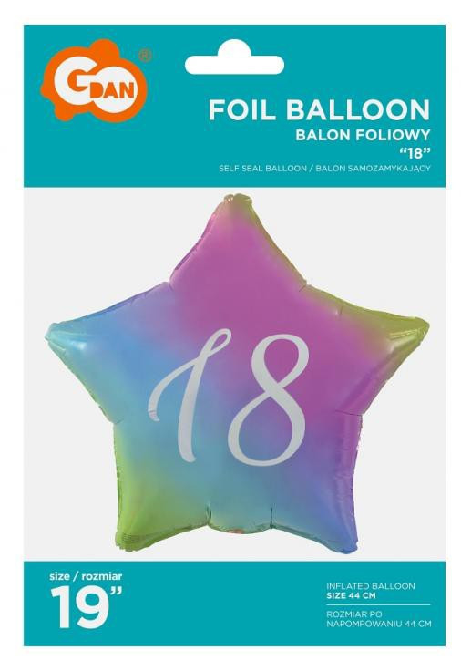 Szivárvány Happy Birthday 18 Rainbow csillag fólia lufi 44 cm