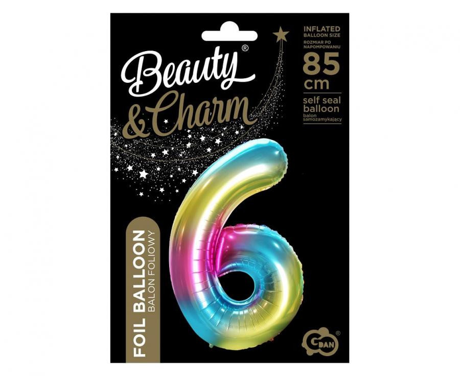 Rainbow, Szivárvány 6-os szám fólia lufi 85 cm
