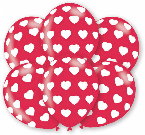 Szives Red léggömb, lufi 6 db-os 11 inch (27,5cm)