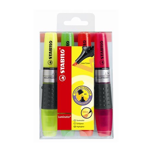 Szövegkiemelő készlet, 2-5 mm, STABILO "Luminator", 4 különböző szín