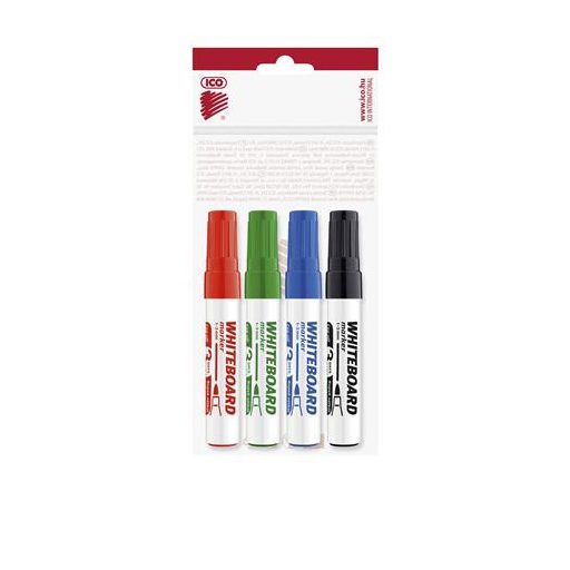 Tábla- és flipchart marker készlet, 1-3 mm, kúpos, ICO "Plan", 4 különböző szín