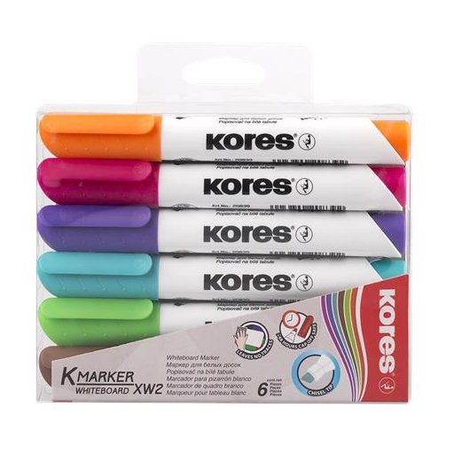 Tábla- és flipchart marker készlet, 3-5 mm, vágott, KORES "K-Marker XW2", 6 különböző szín