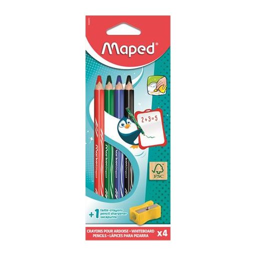 Táblaceruza készlet, fehértáblához, MAPED, 4 féle szín, hegyezővel