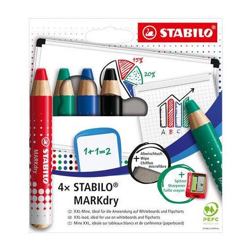 A STABILO MARKdry egy vastag színes jelölő ceruza whiteboard táblákhoz és flipchartokhoz.