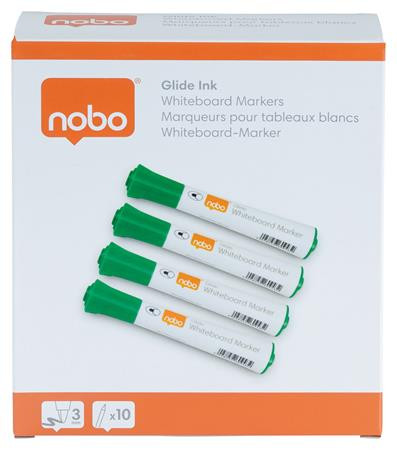 Táblamarker, kúpos hegyű, 2 mm, 10 db, NOBO "Glide", zöld
