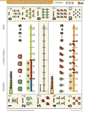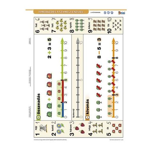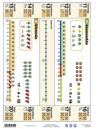 A számegyenest gyakoroltató munkalap. Bármilyen kapcsos mappába lefűzhető, a többi tanulói munkalappal együtt gyűjthető, így válnak rendszerezhetővé, áttekinthetővé az alapismeretek. Előnye, hogy dupla oldalas: mind a két oldal tanít és gyakoroltat. A tanuló önmagát is tudja ezáltal ellenőrizni. Mivel vízálló, írható- letörölhető a felülete, újra és újra használható.