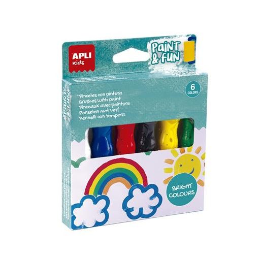 Tempera készlet, ecsetvégű tubusban, APLI Kids "Paint&Fun", 6 különböző szín