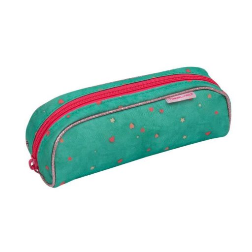 Tolltartó, henger alakú, cipzáras, BELMIL "Cute sloth", zöld-rózsaszín, szivecske