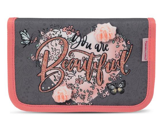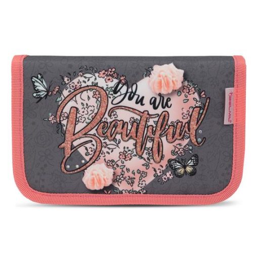 Tolltartó, klapnis, cipzáras, BELMIL "Bloomy Blossom", szürke-rózsaszín, szív