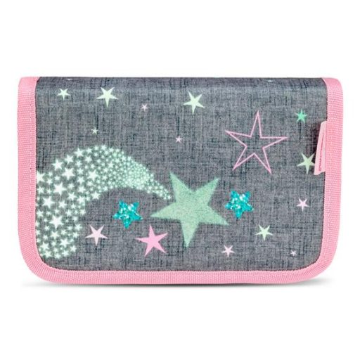 Tolltartó, klapnis, cipzáras, BELMIL "Shine Bright", szürke-rózsaszín, csillagok