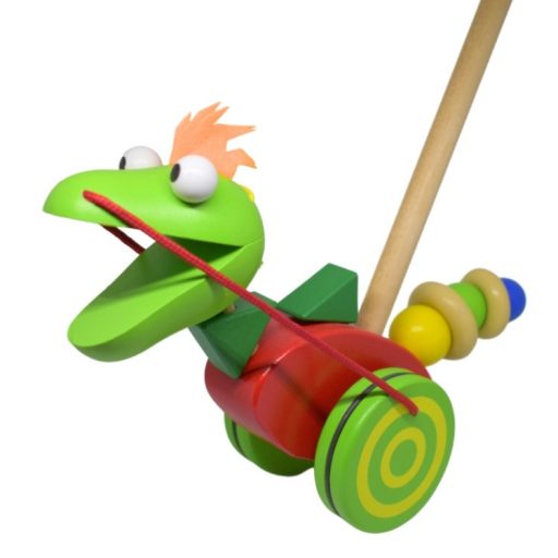A színes tologatós sárkány formájú játék nemcsak funkcionális, hanem vizuálisan is vonzó. Az élénk színek és a barátságos sárkány forma azonnal felkeltik a gyerekek érdeklődését és garantálják, hogy a játék hamar kedvenccé válik. A színes kialakítás segít stimulálni a gyerekek vizuális érzékelését és hozzájárul az esztétikai ízlésük fejlődéséhez.