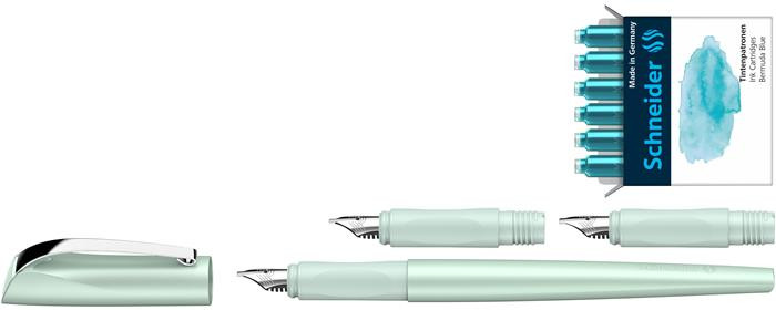 Töltőtoll ajándékszett, 1,1 mm, ajándék 1,5 és 1,8 mm-es tollheggyel, SCHNEIDER "Callissima", mentazöld