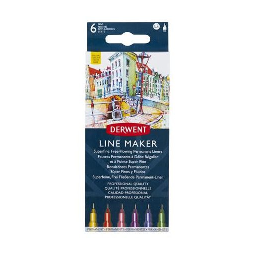 Tűfilc készlet, 0,3 mm, DERWENT "Line Marker", 6 különböző szín