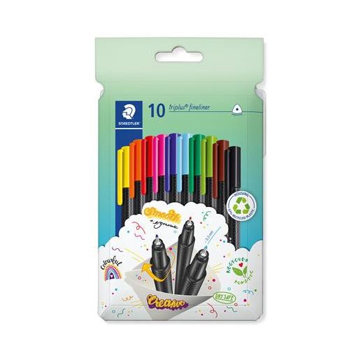 Tűfilc készlet, 0,3 mm, STAEDTLER "Triplus 334", 10 különböző szín