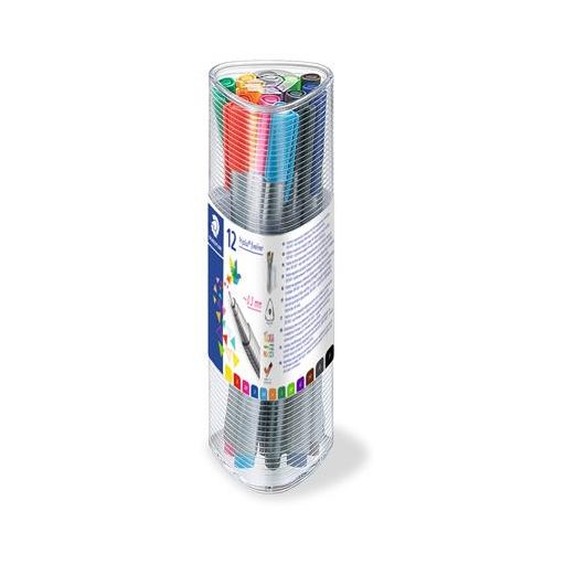 Tűfilc készlet, 0,3 mm, STAEDTLER "Triplus 334", 12 különböző szín