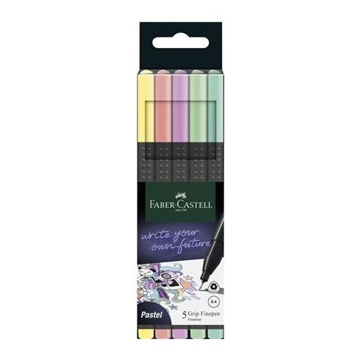 Tűfilc készlet, 0,4 mm, FABER-CASTELL "Grip", 5 különböző pasztell szín