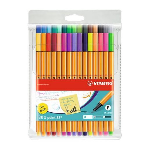 Tűfilc készlet, 0,4 mm, STABILO "Point 88", 25+5 különböző szín