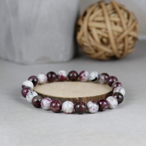 A karkötőn lévő gyöngyök 8mm valódi ásványok, rugalmas szilikonra fűzve.