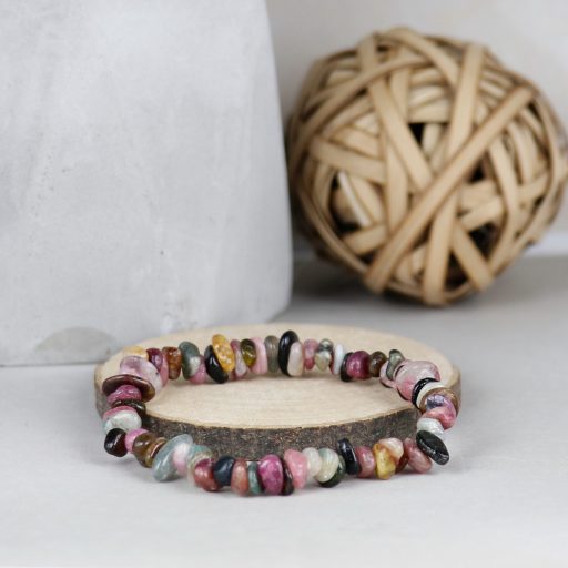 A karkötőn lévő gyöngyök, valódi ásványok rugalmas szilikonra vannak fűzve, több méretben rendelhető