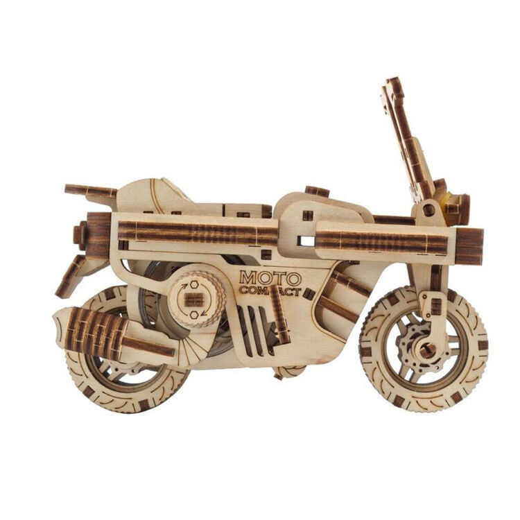 A UGEARS büszkén mutatja be a „Moto Compact összecsukható robogót” – egy intelligens, rugós hajtású járművet! Egyenesen az amúgy is lenyűgöző, kétkerekű mechanikus modellünk kollekciójának különleges darabját. A robogó sok fiatal első személyes közlekedési eszköze volt. Megtestesíti a szabadságot, a rugalmasságot, a menő utat az egyetemre való ingázáshoz, hobbihoz, felnőtté váláshoz. Ez egy módja annak, hogy olyan helyeket érj el, amelyek ismeretlenek még és szívesen felfedeznéd ezeket akár egy vasárnap délután. Ez az izgalom érzése újjáéled, ha összeállítod ezt az aranyos összecsukható robogót. A motoros robogók akkor váltak népszerűvé, amikor Audrey Hepburn és Gregory Peck híres Vespa (olaszul „darázs”) robogójával végighaladt Róma utcáin a „Római nyaralás” című díjnyertes filmben. Annak ellenére, hogy Észak-Amerika csak félvállról karolta fel a robogókat, a világ számos régiójában, így Európában, Ázsiában és Latin-Amerikában is nélkülözhetetlen közlekedési eszközzé vált. Ez a rétegelt lemez modellt egy rugós motor tolja előre. Egy felhúzással akár 6 métert is képes megtenni. A kormány három helyzetbe állítható, hogy a Moto compact robogó egyenesen menjen, vagy jobbra vagy balra kanyarodjon. A legtöbb Ugears modellhez hasonlóan a Moto Compact robogó is tele van lenyűgöző funkciókkal, mint például a hátsó és az első felfüggesztéstől kezdve az összecsukhatóságig. Szeretnéd elindítani a robogót? Fogd meg és húzd szét a hátsó és az első részt, ami így megemeli a kormányt. A vezetőülés lenyomása aktiválja a „stop” mechanizmust. Most használd a racsnis gombot a kerékpár jobb oldalán a motor indításához. Húzd fel az állványt, és használd a robogó alatti apró vezetőkerekeket a jobb egyensúly érdekében. Helyezd a modellt valamilyen sima felületre (például a padlóra), majd nyomd meg a „start” gombot – az utasülés hátulján. A vezetőülés felugrik, és ezzel együtt elindítja a főfokozatot. Engedd el, és figyeld a robogó útját! További információk a modellről: Alkatrészek száma: 192 Az összeszerelés becsült ideje: 4-8 óra Az elkészült modell mérete: 14.47 x 6 x 10.9 cm