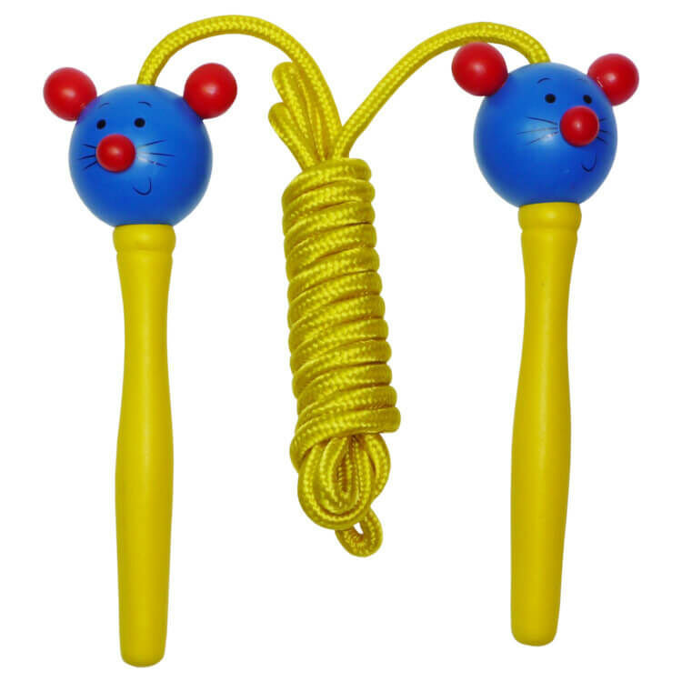 Színes ugrálókötél egeres fogórésszel díszítve. Minden gyerek szeret ugrálókötelezni, hiszen jó móka és lehet egyedül vagy párban is. A remek szórakozás során fejlődik a gyermek egyensúlyérzéke és mozgáskoordinációja.