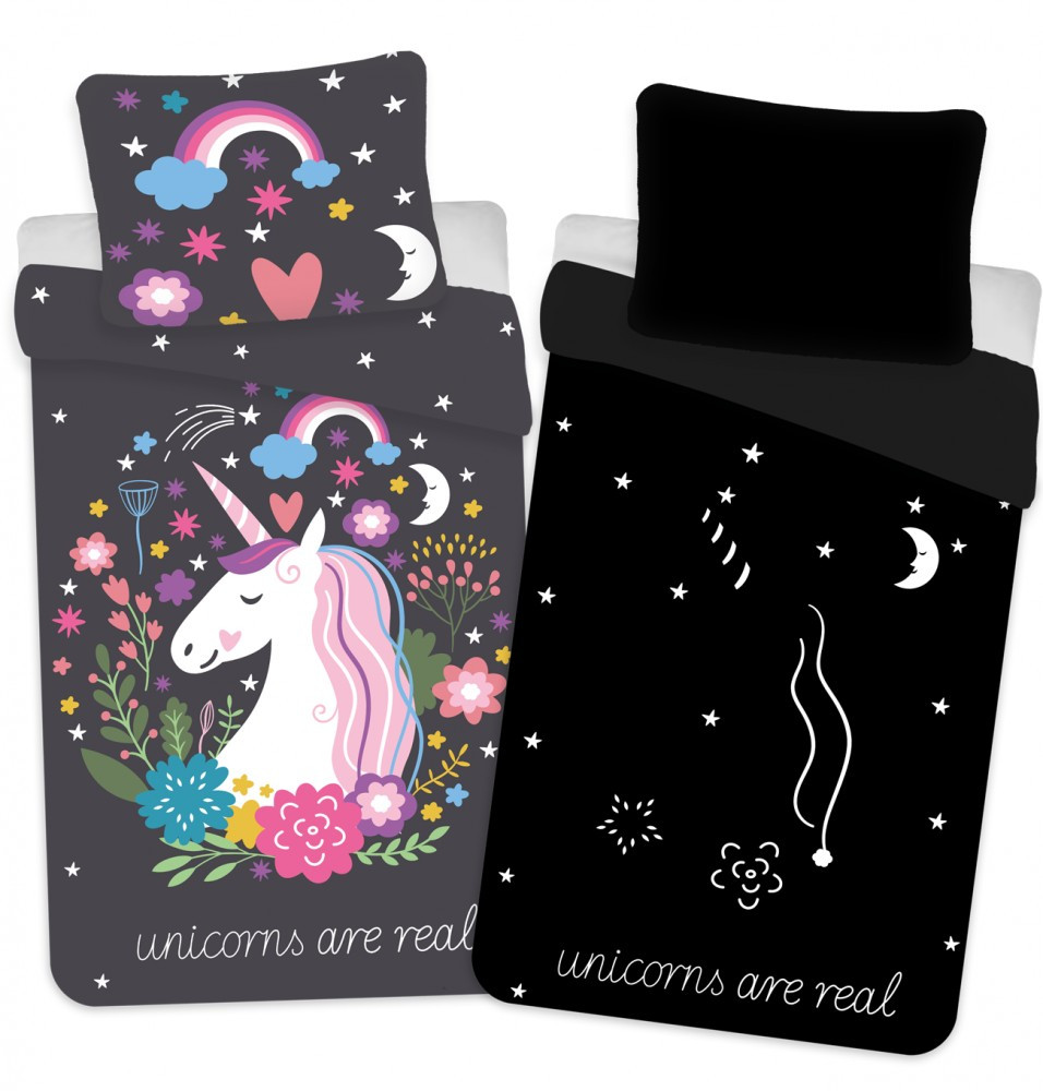 Unikornis Real Sötétben világító ágyneműhuzat 140×200cm, 70x90 cm