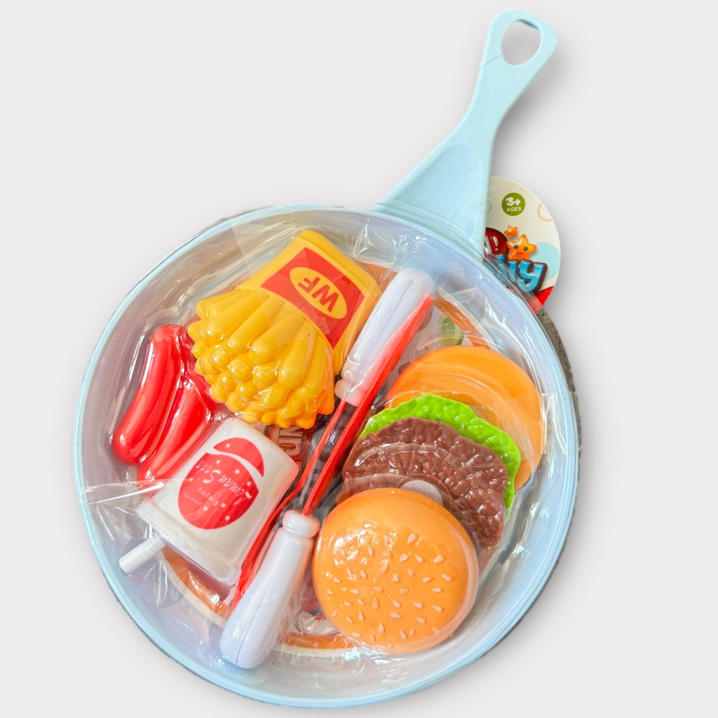 A készletben található serpenyő és vágható élelmiszerek segítségével a gyerekek úgy főzhetnek, mint a nagyok!