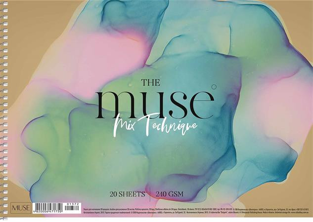 Vázlatfüzet, spirál, A4, 240 g, 20 lap, SHKOLYARYK "Mix Technique Muse"