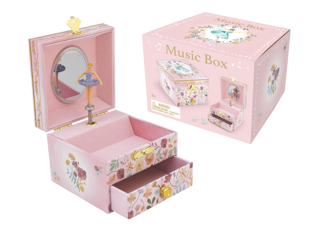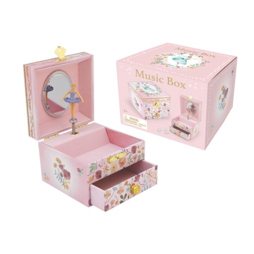 Zenélő ékszerdoboz 1 fiókos, rózsaszín - balerinás