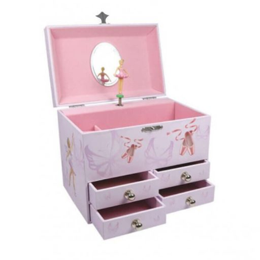 Zenélő ékszerdoboz nyitható tetővel és 4 fiókkal